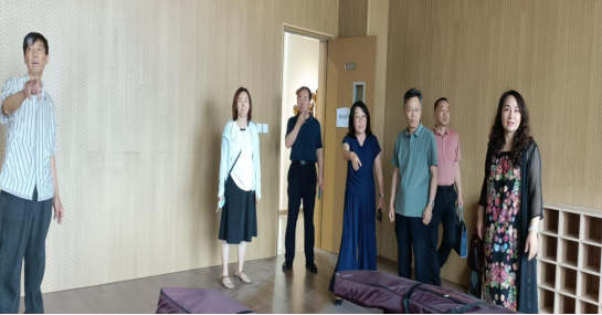 2024年7月11日,学院党委副书记、院长宋希文,党委委员、副院长杭刚到学院“美润匠心”美育基地进行指导调研,教务处、电大、人文管理系负责人陪同。