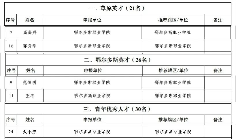 近日,2023年度鄂尔多斯市高层次人才评选结果公示。我院获评草原英才2名,鄂尔多斯英才2名、青年优秀人才1名,祝贺5位老师!