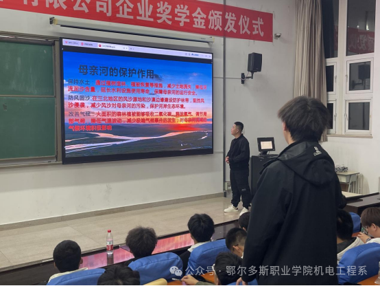 加强荒漠化综合防治,深入推进“三北”重点生态工程建设,事关我国生态安全、事关强国建设、事关中华民族永续发展,是一项功在当代、利在千秋的崇高事业。为积极响应和贯彻习近平总书记对 “三北”重点生态工程的重要指示批示精神,提升广大学生的环保意识,10月29日机电工程系团总支开展了 “助力三北工程、保护母亲河” 主题团课,2024级所有团员参加。