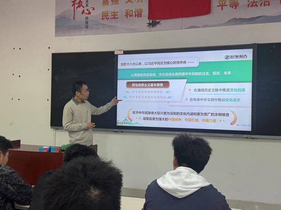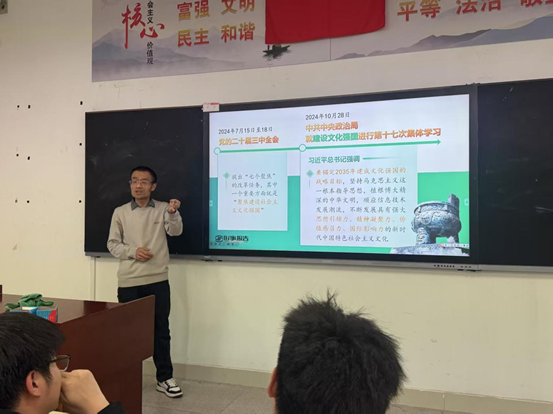 为深入学习贯彻党的二十大及二十届三中全会精神,强化青年思想政治引领,3月31日,机电工程系开展入团积极分子第四次培训课。系党总支副书记张科强以“加快建设社会主义文化强国”为主题开展宣讲,44名入团积极分子参与学习。