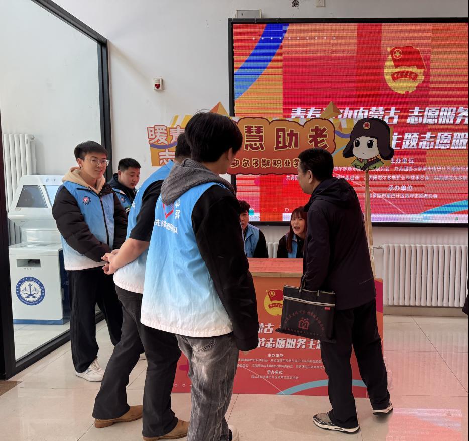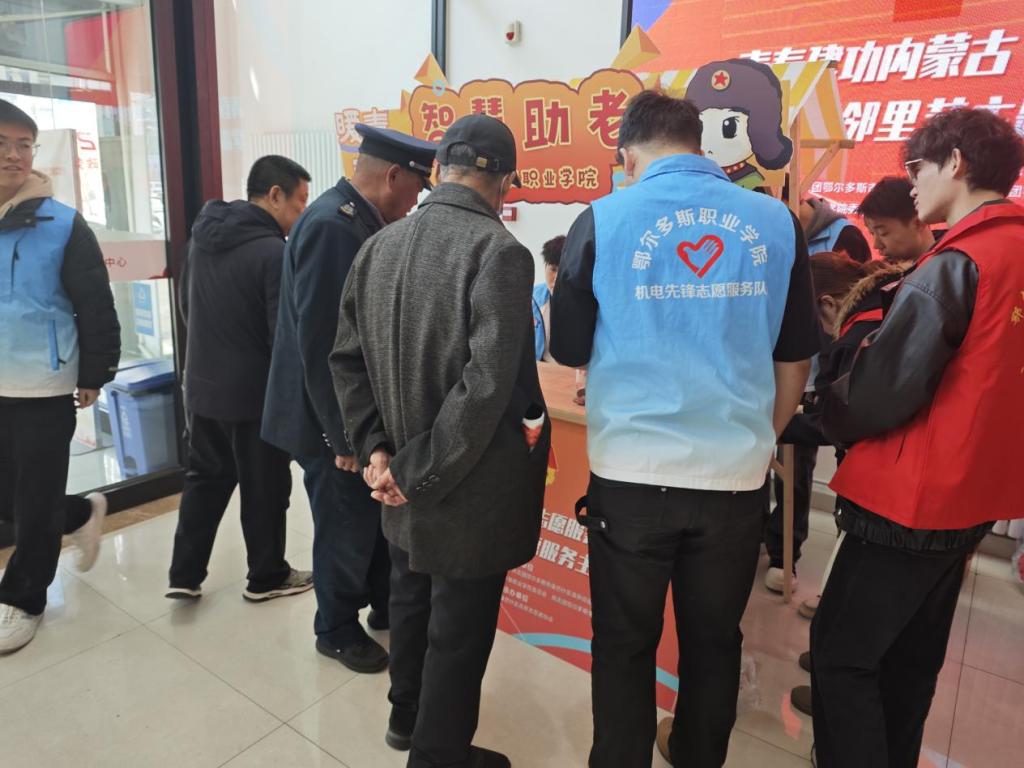 3月5日,第62个学雷锋纪念日,康新街道邻里中心热闹非凡,正值“青春建功内蒙古 志愿服务耀北疆”共青团校地共建“暖青志美”志愿活动服务品牌和项目发布仪式在此开展。机电工程系志愿服务队来到康新街道邻里中心开展“智慧助老”志愿活动。