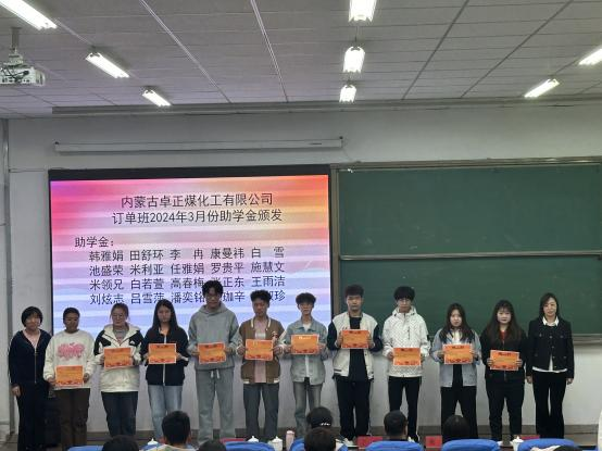 4月29日晚,“汇能·化工杯”文体活动暨卓正订单班奖助学金颁奖仪式在教学楼222举行。内蒙古卓正煤化工有限公司人力资源主管王磊、公用工程中心副主任李霞、机电仪表管理中心DCS技术员李旭梅,化学工程系党支部书记、主任马桂香、党支部副书记朱晴、学工科科长张乾,卓正班全体学生及化学工程系部分学生代表参加了活动。
