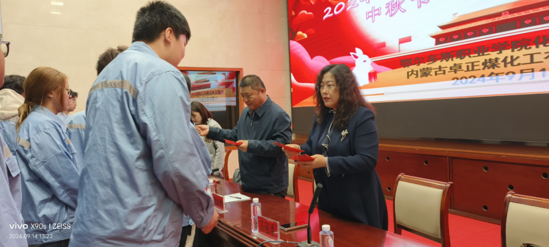 秋风送爽、丹桂飘香,在中秋佳节和国庆华诞即将来临之际,为让学生享受温馨的节日氛围,感受企业的温暖和关怀,化学工程系联合内蒙古卓正煤化工有限公司一起开展“同心发展 情满卓正”中秋.国庆慰问活动。卓正煤化工有限公司副总经理祁晓辉,化学工程系党总支书记、主任马桂香、企业指导教师和辅导员及卓正订单班、委托培养班、2+2+2班的同学参加了活动。
