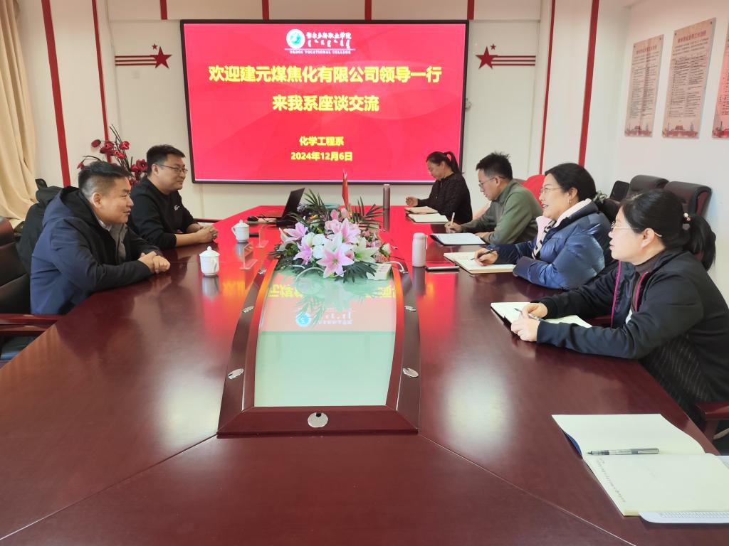 为进一步加强校企合作、促进产教融合,12月6日,内蒙古建元能源集团有限公司副总经理张瑞军、行政人力资源部副部长马慧宇到化学工程系走访,化学工程系书记、主任马桂香及无课教师参加座谈交流。