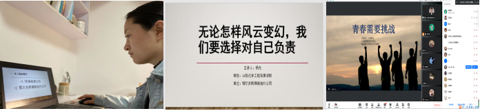 王恩泽是17级煤深班毕业生,2020年9月专升本考入呼伦贝尔学院化学工程与工艺专业。分享会上,王恩泽以《青春需要挑战》为主题,告诉同学们要勇于挑战、不能懒惰,珍惜现在每一次学习及组织参加活动的机会,挑战自我,不负青春。王恩泽还和学弟学妹们分享了自己专升本的经历以及现在在本科院校就读的感受,鼓励同学们一往无前,向着自己的目标奋进。