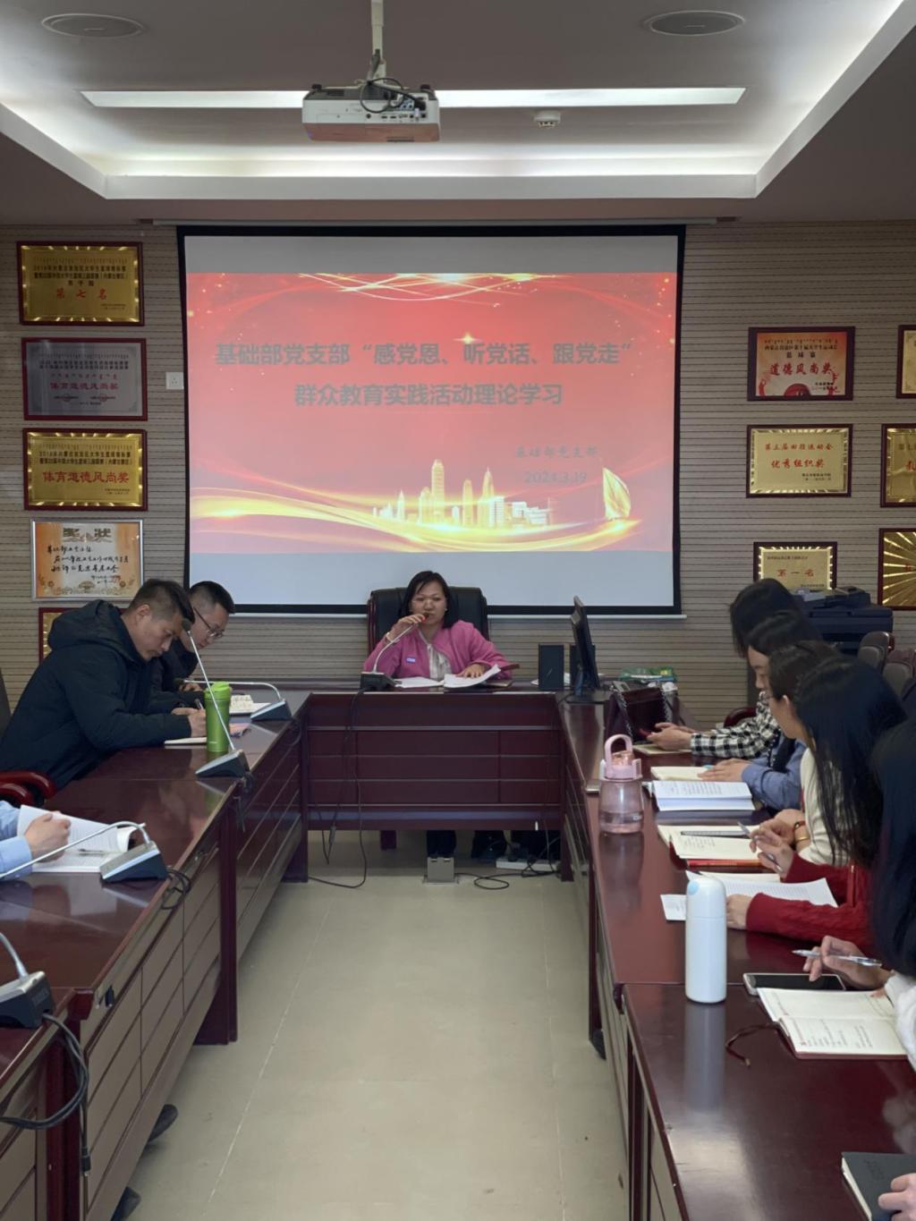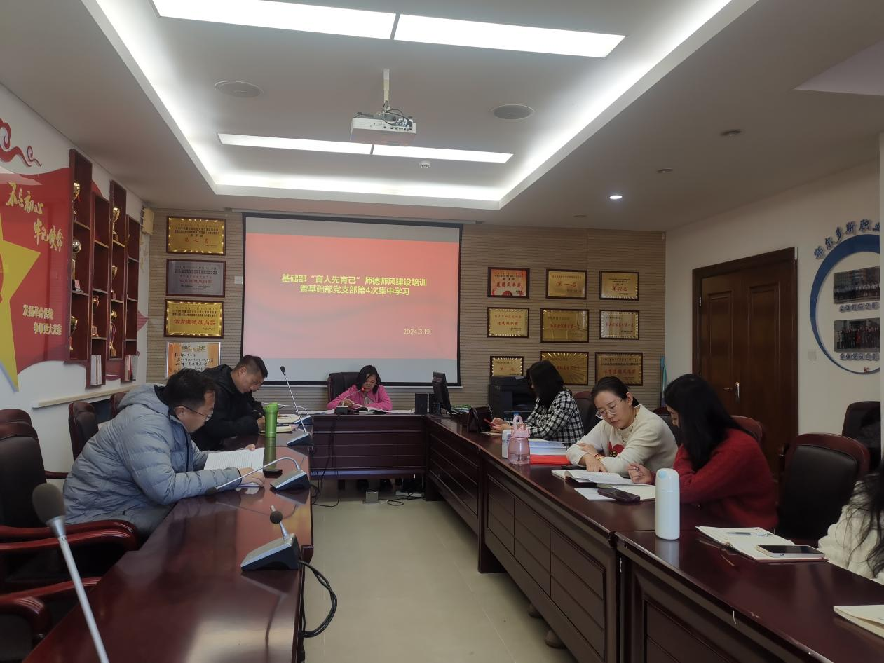 3月19日下午,基础部党支部在教研楼401组织第4次集中学习,支部书记朱必云主持会议,基础部全体教师参加学习会。