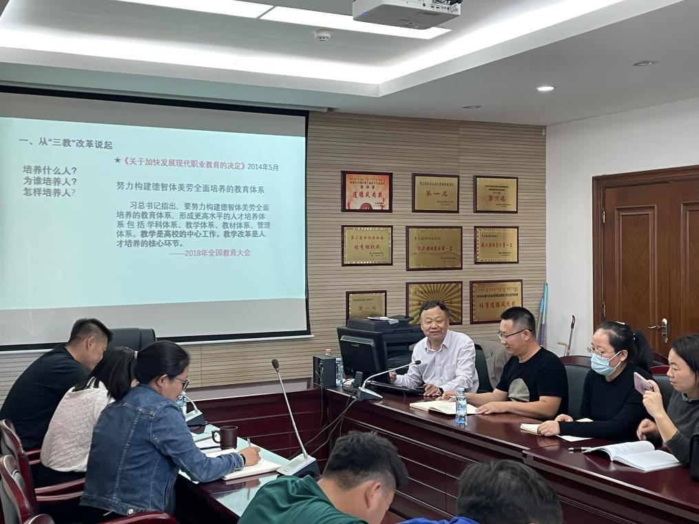 郝霄鹏同志结合基础部实际,以“教学方法与设计 教学反思与研究--与新教师一起探索与交流”为题,从“三教”改革说起,讲述了“三教改革”的主要内涵、实施路径;结合教学大赛、自身从教经历,重点讲述如何做好课程设计、教学设计;最后又阐述了教学反思的意义,以及如何做好教学反思,内容生动、丰富,同志们反响良好。