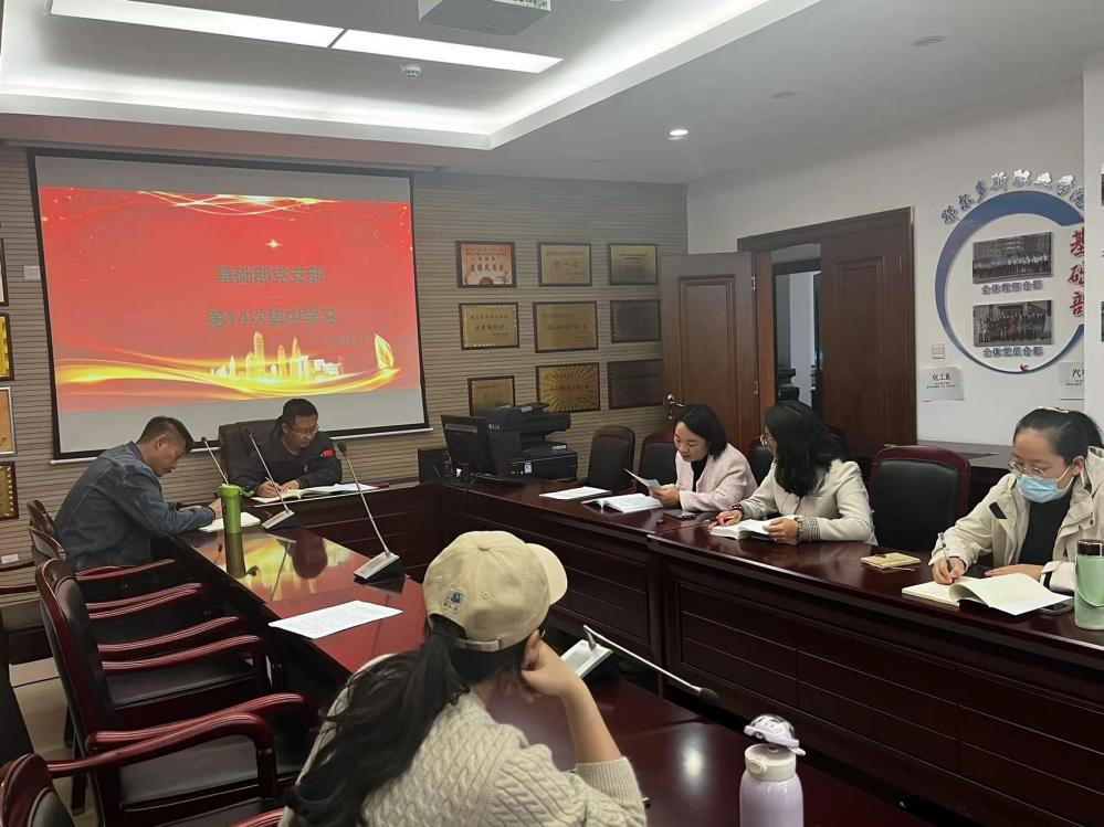 为持续深化主题教育,推动学习贯彻习近平新时代中国特色社会主义思想主题教育往深里走、往心里走,10月17日下午,基础部党支部在教研楼401组织开展第14次集中学习,基础部主任马长平主持会议,全体党员参加了学习会。