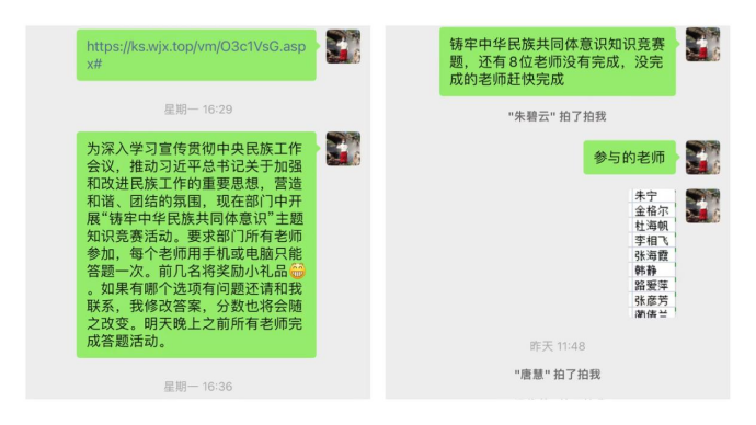 本次活动以促进民族团结进步、进一步增进全体教师民族认同感为主旨,以促进民族文化交融为目的,围绕“铸牢中华民族共同体意识”学习内容,以闭卷答题的形式开展,共出题20道,计时10分钟,全体教师参与。此次活动积极引导广大教师牢固树立“三个离不开”思想,不断增强“五个认同”,铸牢中华民族共同体意识。