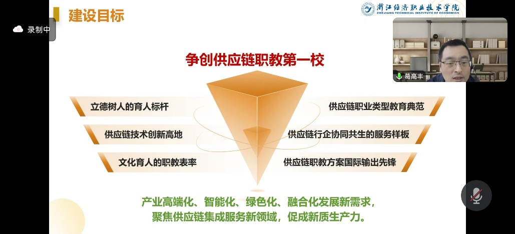 11月19日,学院“双高”创建办公室举行线上交流研讨会议。此次会议特别邀请浙江经济职业技术学院质量监控(“双高”办)办公室主任葛高丰进行指导。学院党委委员、副院长、“双高”办主任杭刚及“双高”办全体成员参加会议。